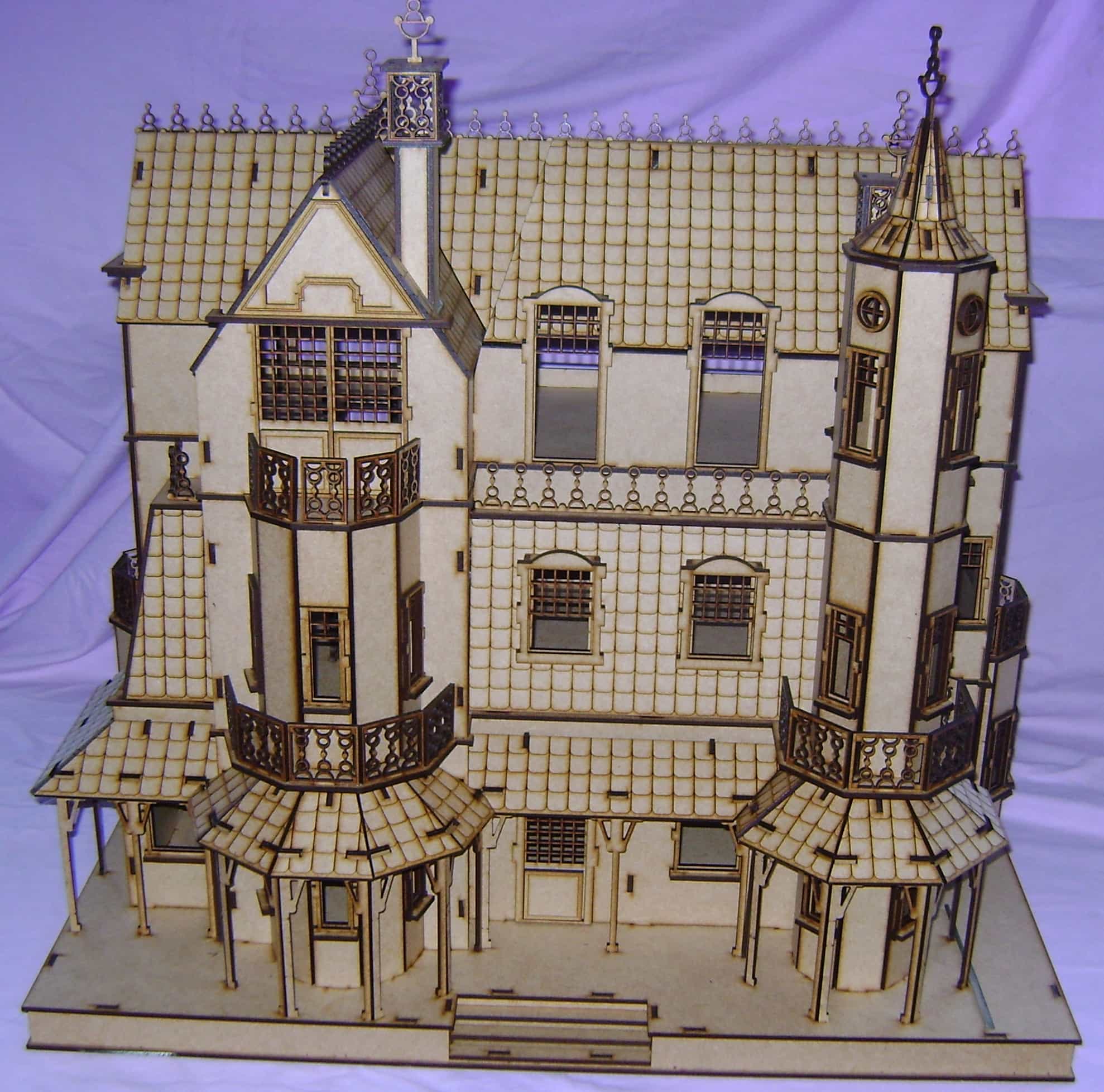 Step into a miniature world with this intricately laser-cut dollhouse, a stunning blend of craftsmanship and creativity, perfect for painting to your heart's desire. Crafted from 3mm Birch plywood. The pitched roof includes shingle outlines for a realistic finish. Left unpainted, the natural wood exudes rustic charm, but it's designed as a blank canvas—use acrylics, watercolors, or stains to bring the facade to life with vibrant hues or weathered effects.