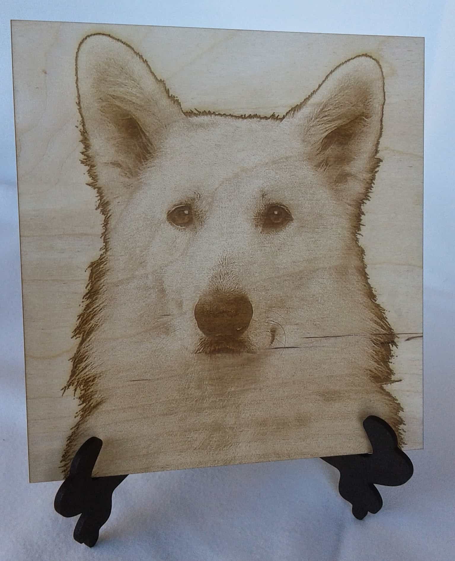 Honor the memory of a beloved companion with this poignant laser-engraved photograph on wood, a lasting tribute to your pet. Etched onto an 150 x 210 mm Birch Ply, the image captures a cherished moment. The laser's fine touch brings out every detail: the texture of a beloved companion,