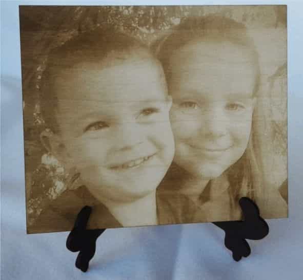 Preserve the joy of family with this charming laser-engraved photograph on wood, a heartwarming snapshot of grandkids in their happiest moment. Carved into a 150 x 210 panel of Birch Ply, the image bursts with life flashing a toothy grin, and . The laser's precision captures every detail: the twinkle in their eyes, the tousled hair, and the pure, unfiltered delight.
